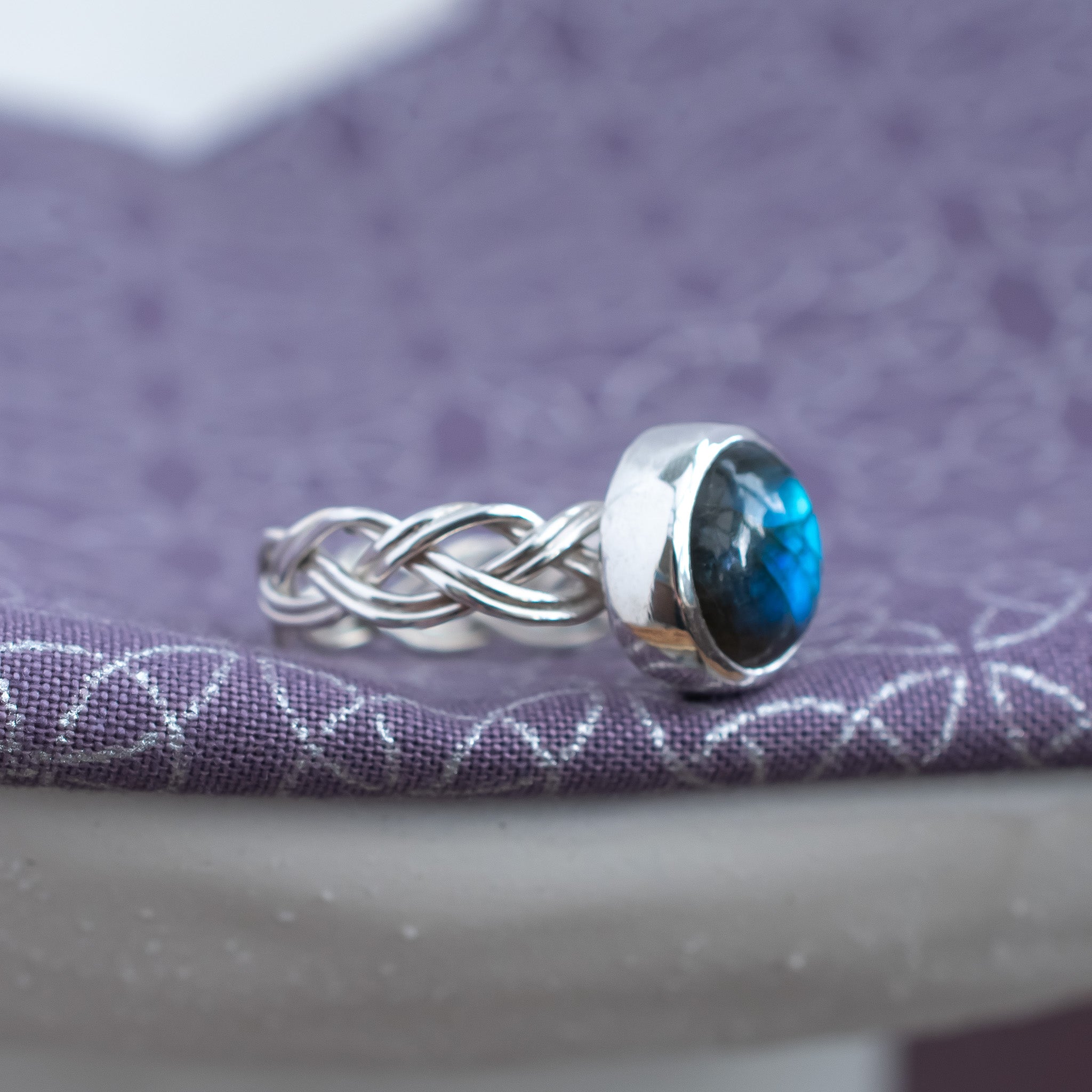 Celtic Braided Ring Band, Blue Labradorite, UK Size Q