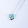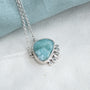 A beautiful freeform piece of hand cut Larimar is set in this One of a Kind Argentium Silver Pendant. The Natural Larimar stone has a unique pattern & is surrounded by pretty solid pebbles of Silver. With an adjustable Argentium Silver chain you can wear at two different lengths to suit your look. I love the size and feel of this piece which has a high mirror polish to show of the white silver shine of Argentium. Larimar always reminds me of the ocean and far away shores, bring some light in to your day with this smooth & tactile piece. There is only one, each piece of Larimar is hand selected from a rough piece that was cut by hand.