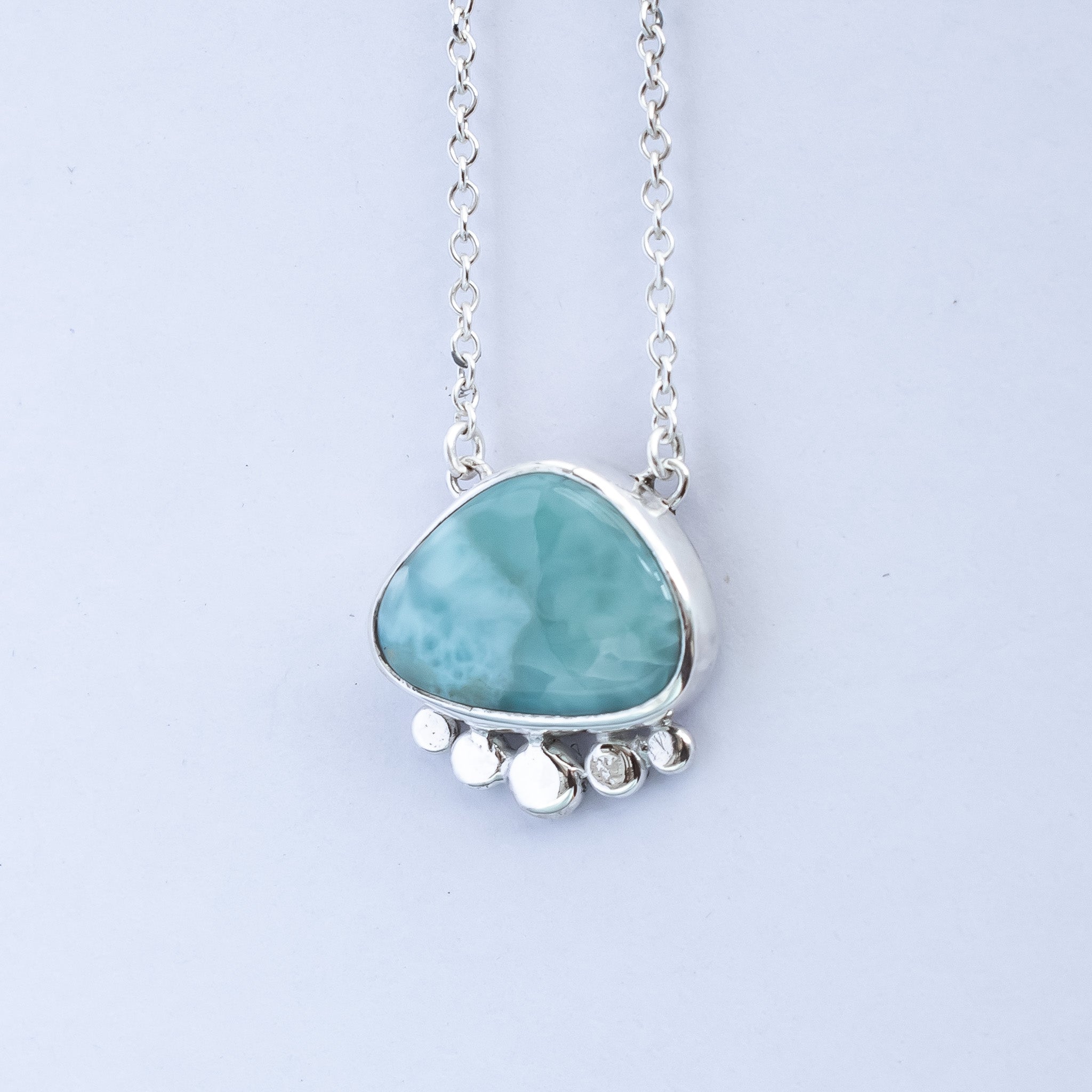Freeform Larimar & Argentium Silver Pebbles Pendant, One of a Kind