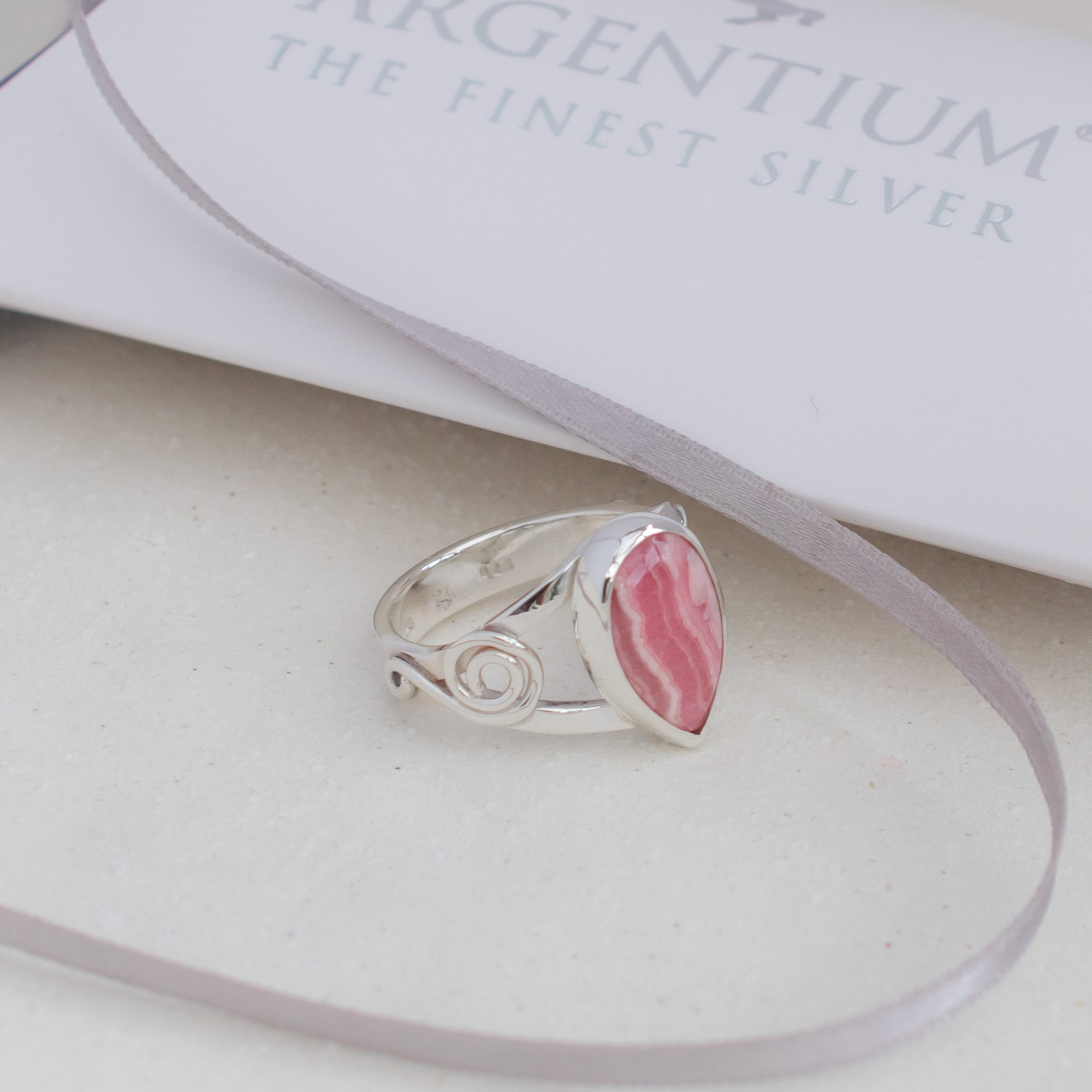 Rhodochrosite Ring in Celtic Swirl Argentium Silver band, UK size O ½