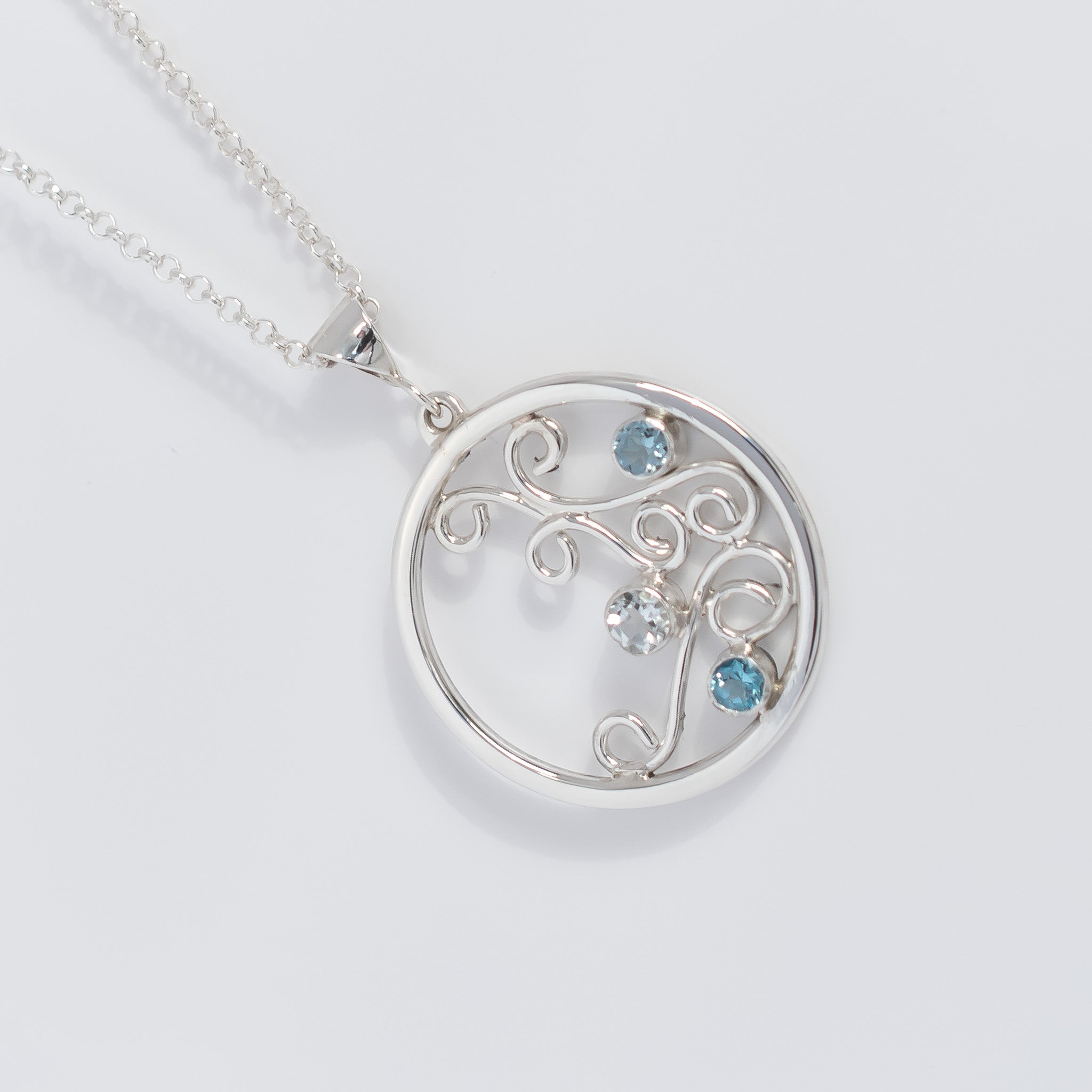 'Winters Deep' Argentium Silver Swirl Pendant Aquamarine, Apatite & Topaz Gemstones